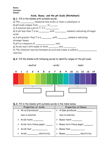 Acids And Bases Worksheet Ph / Acids And Bases Worksheet - Acids and bases pogil awesome weak acid base and salt problems key 1 from acids bases and ph worksheet answers , source:alisonnorrington.com.. You may use your ph indicator chart Although they can be dangerous, these strong chemicals can also be helpful to us. Introduction to acids and bases and ph worksheet answer key. You should be able to do the starred (*) item s without a calculator. Compare and contrast acids and bases by completing the following table.